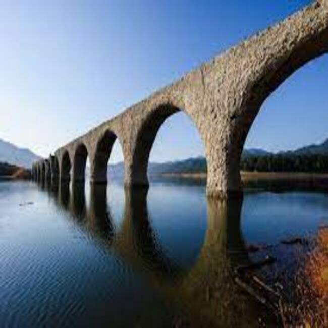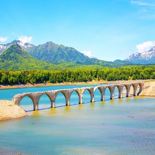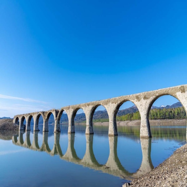 This is the Taushube tsugawa Kyoryo Illusion Bridge, a concrete arch bridge that "can disappear" with the seasons. When the water is high, the bridge will be submerged in water.